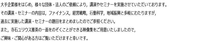 ユリウス企画がお届けする寺石雅英の公式サイトです。群馬大学名誉教授・大妻女子大学キャリア教育センター教授であるサプライズプレゼンター寺石雅英の研究成果および経営コンサル業務や講演活動についてお知らせ致します。